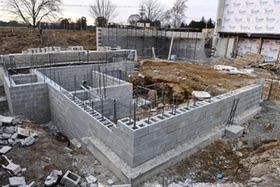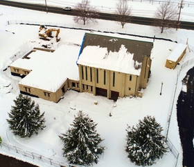 The walls of the new addition continue to rise, and the floor for the main level has been poured. The cross shape created by the new transepts can be clearly seen in aerial photos by parishioner Rob Preston.