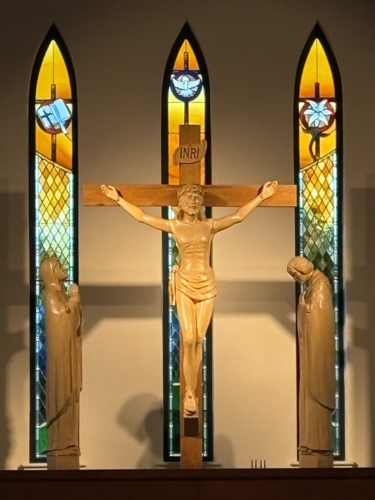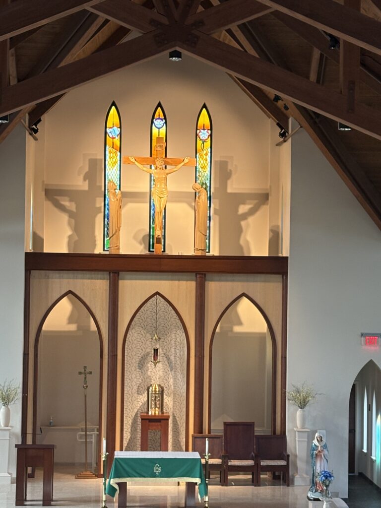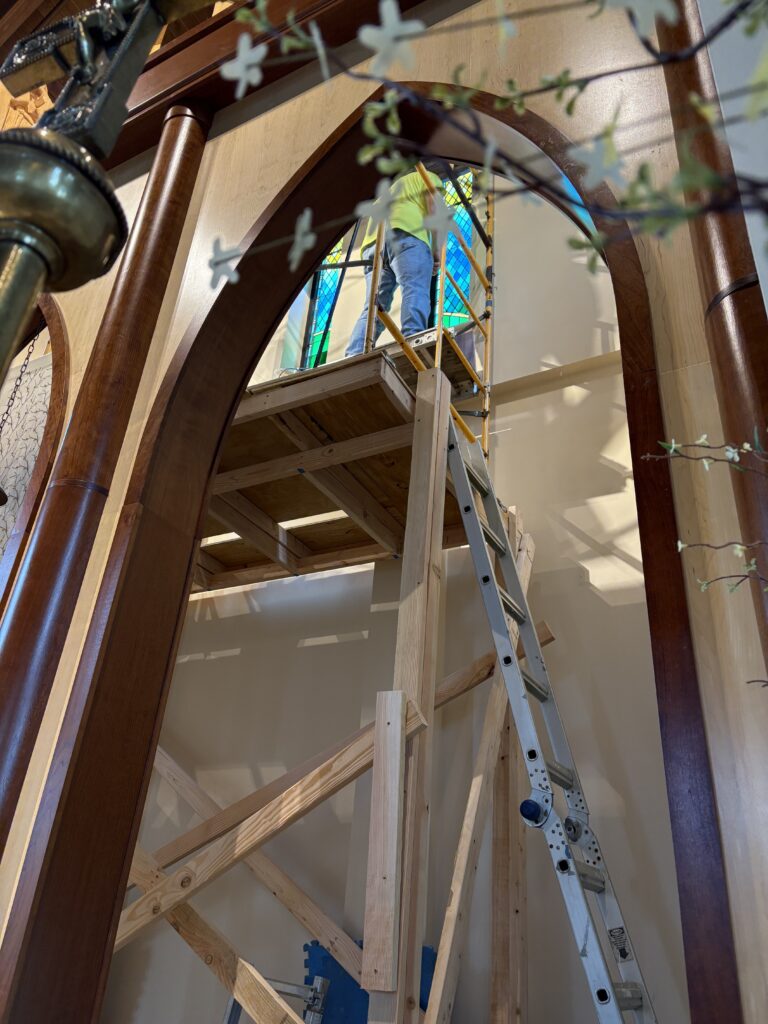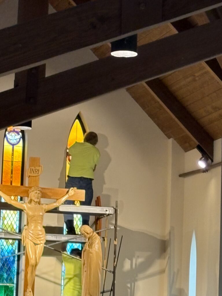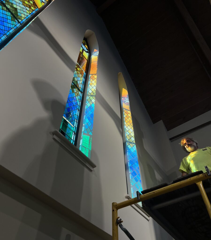 The community of St. Catherine of Siena welcomes the spiritual beauty of five stained glass windows. This generous donation was given with love by Robert Preston, honoring the memory of his beloved wife, Ann. We thank another special light in our parish, Rich Kopf, who designed each panel incorporating the symbols of St. Catherine. We are very grateful to Mark Beard of Scintilla Stained Glass, who created these five windows using Rich’s design. Mark’s expertise in choosing the perfect glass to tell the story and his craftsmanship in making each stained glass panel is remarkable. His work will bring joy to all who enter this sacred space. Special thanks to Charlie Werkheiser, who helped Mark install the panels, and thank you to the committee that helped guide the project.